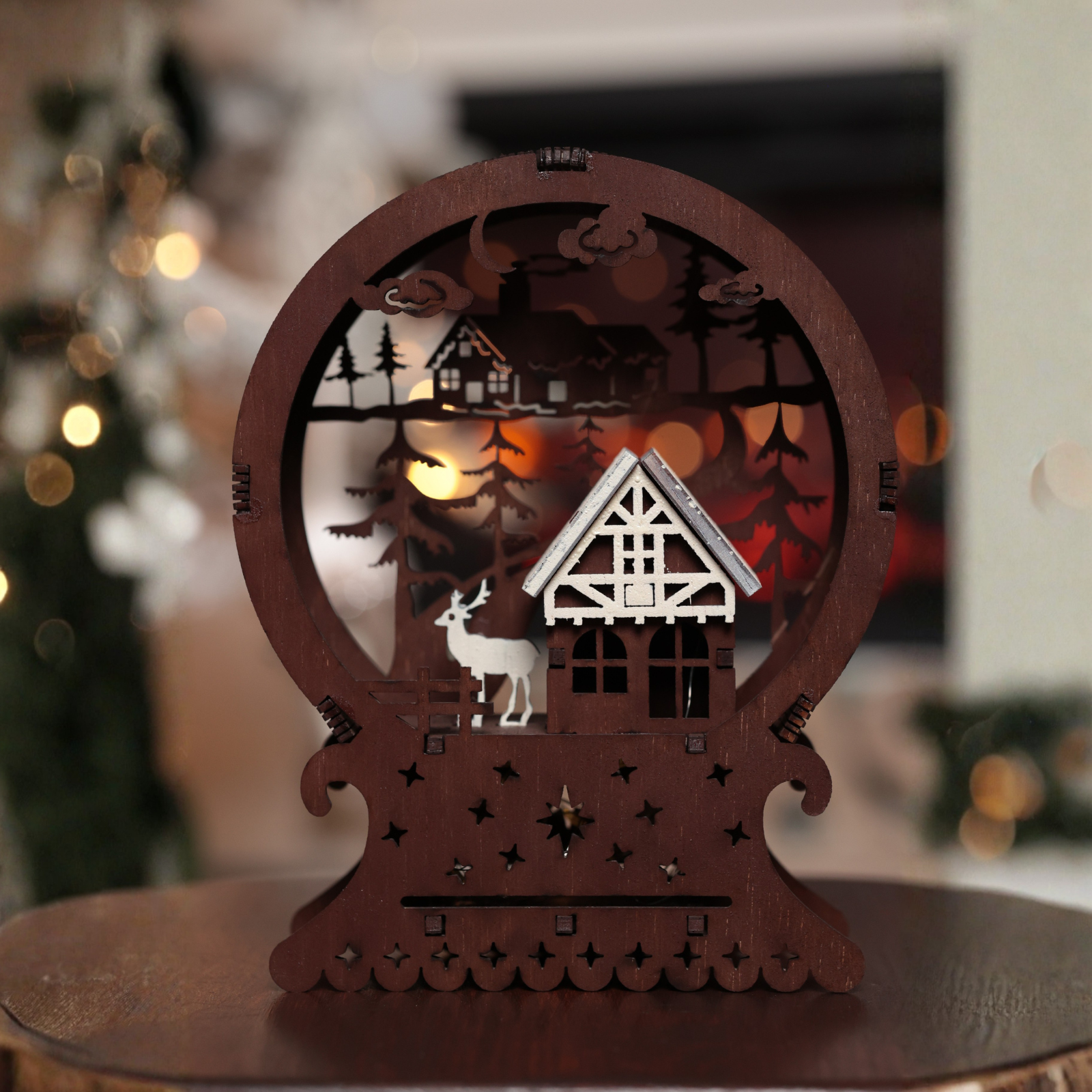 Globul are un design elegant, cu detalii mici si meticuloase care aduc un plus de facrmec.Este iluminat de o lumină caldă care îi conferă un aer festiv și magic. Această decorațiune de Crăciun adaugă o notă de eleganță și tradiție decorului tău de sărbători.