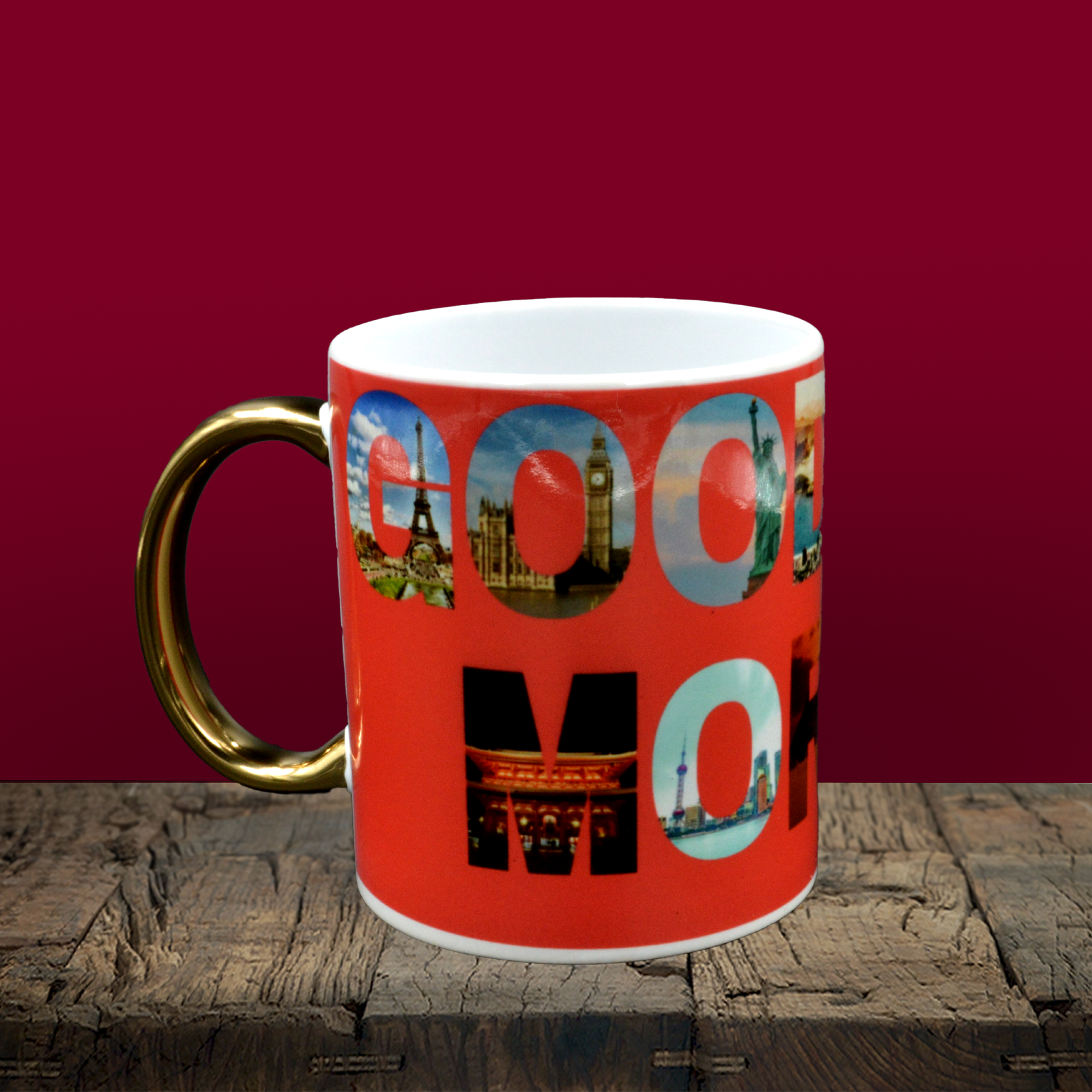 Cana personalizată cu mesajele clientilor și un elegant mâner auriu este mai mult decât un simplu recipient pentru băuturi; este o piesă unică și specială care îmbină utilitatea cu rafinamentul.